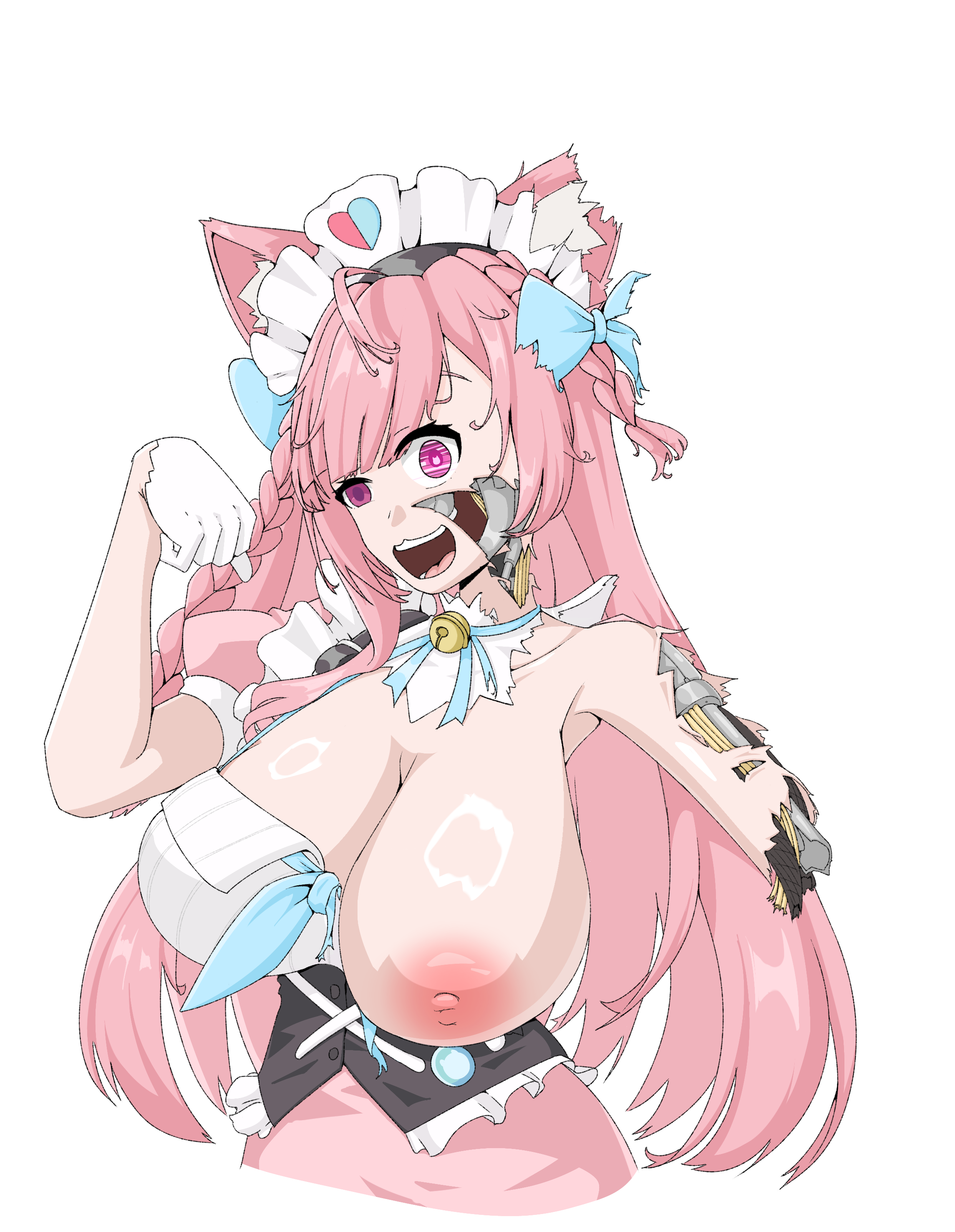 Requesting a damaged Suisei killer robot with a standard or yandere-ish smile while weilding an axe. Also have her clothes partially ripped, showing that she is also wearing very thin lingerie