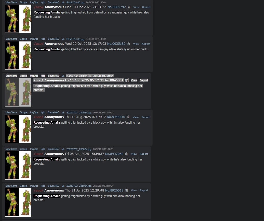>Provide References for all requested characters and keep them to one image/post