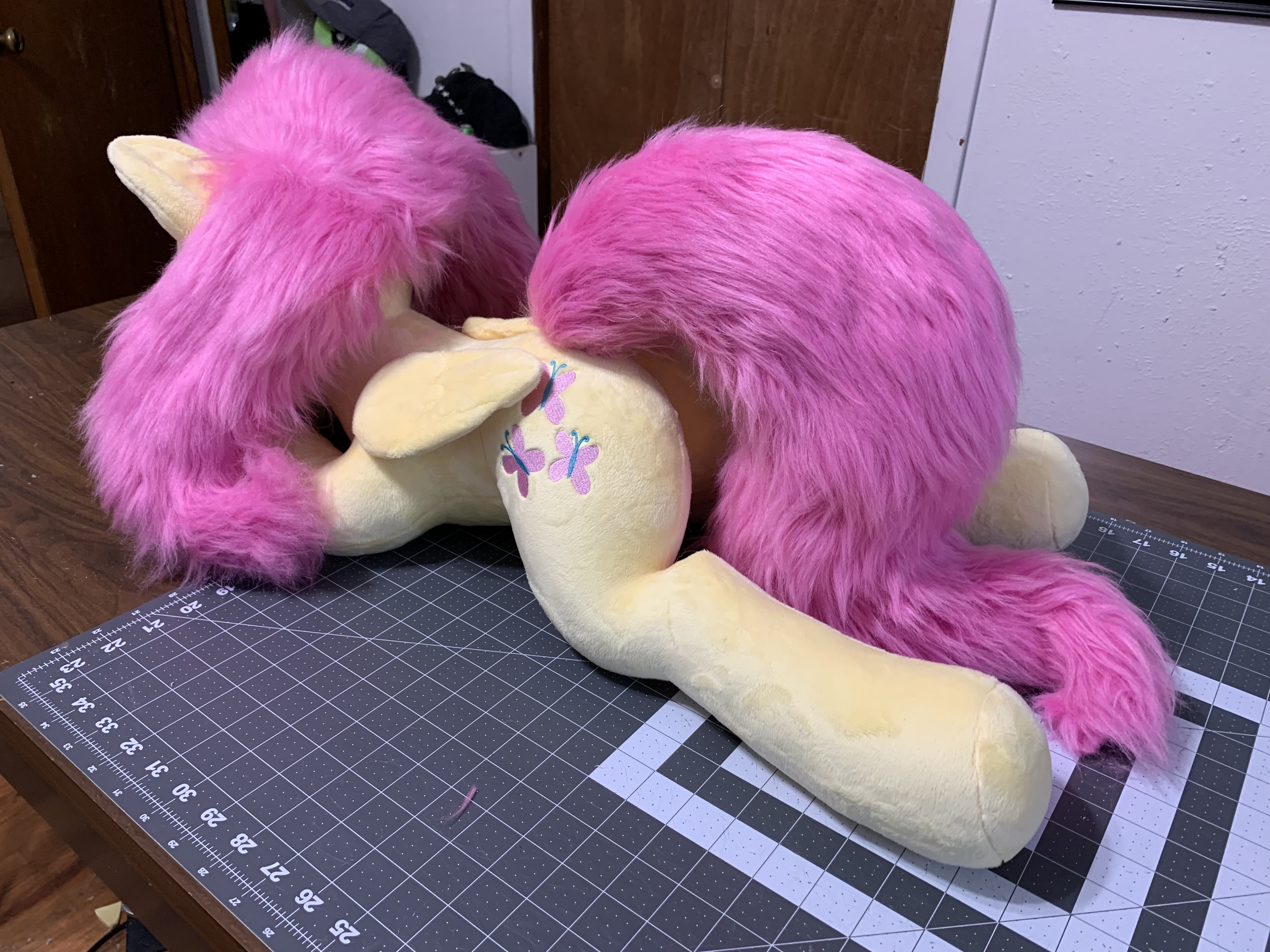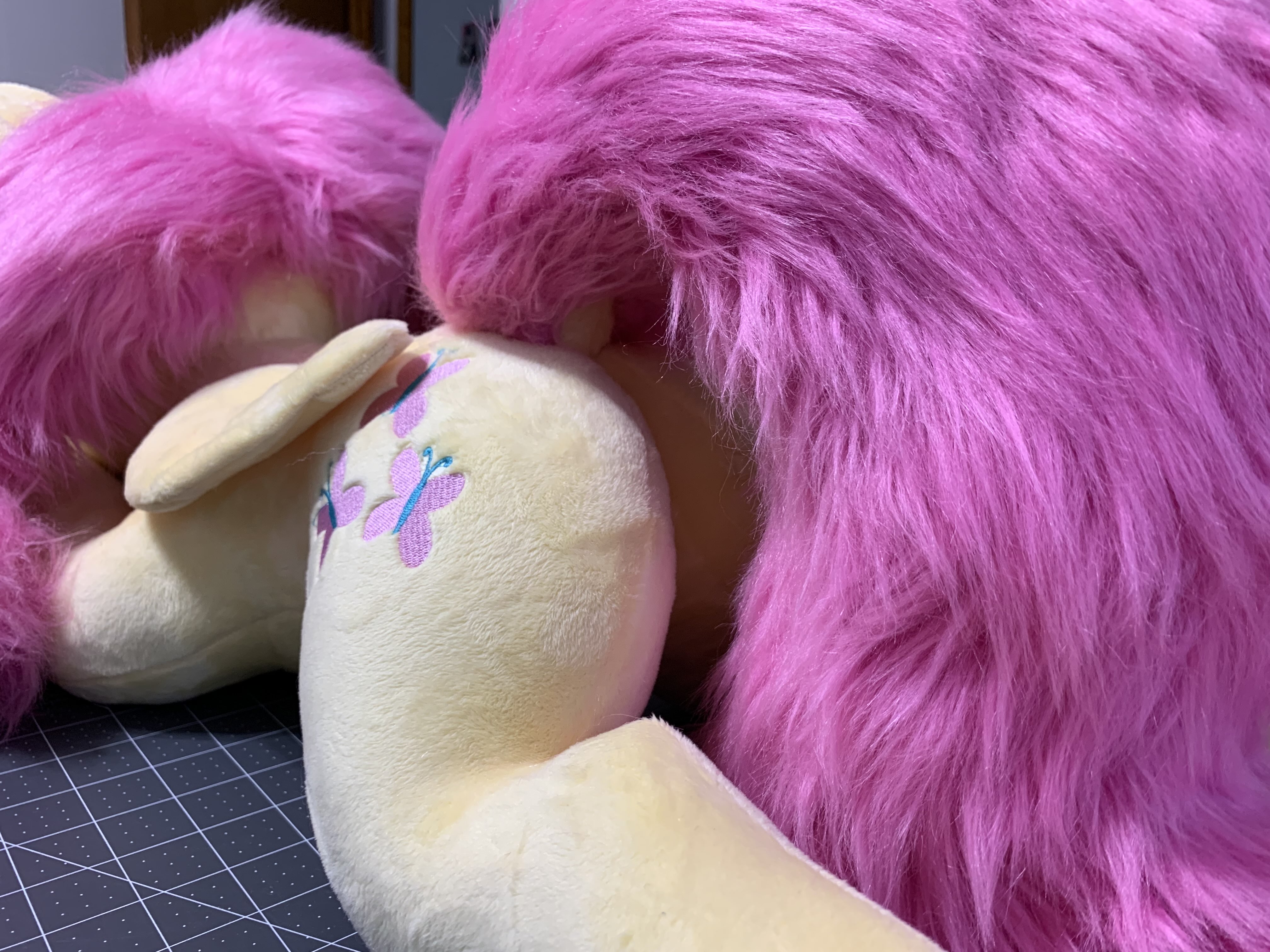 I finished a faux furFluttershy. She's a little poofy, but I'm happy with the outcome.