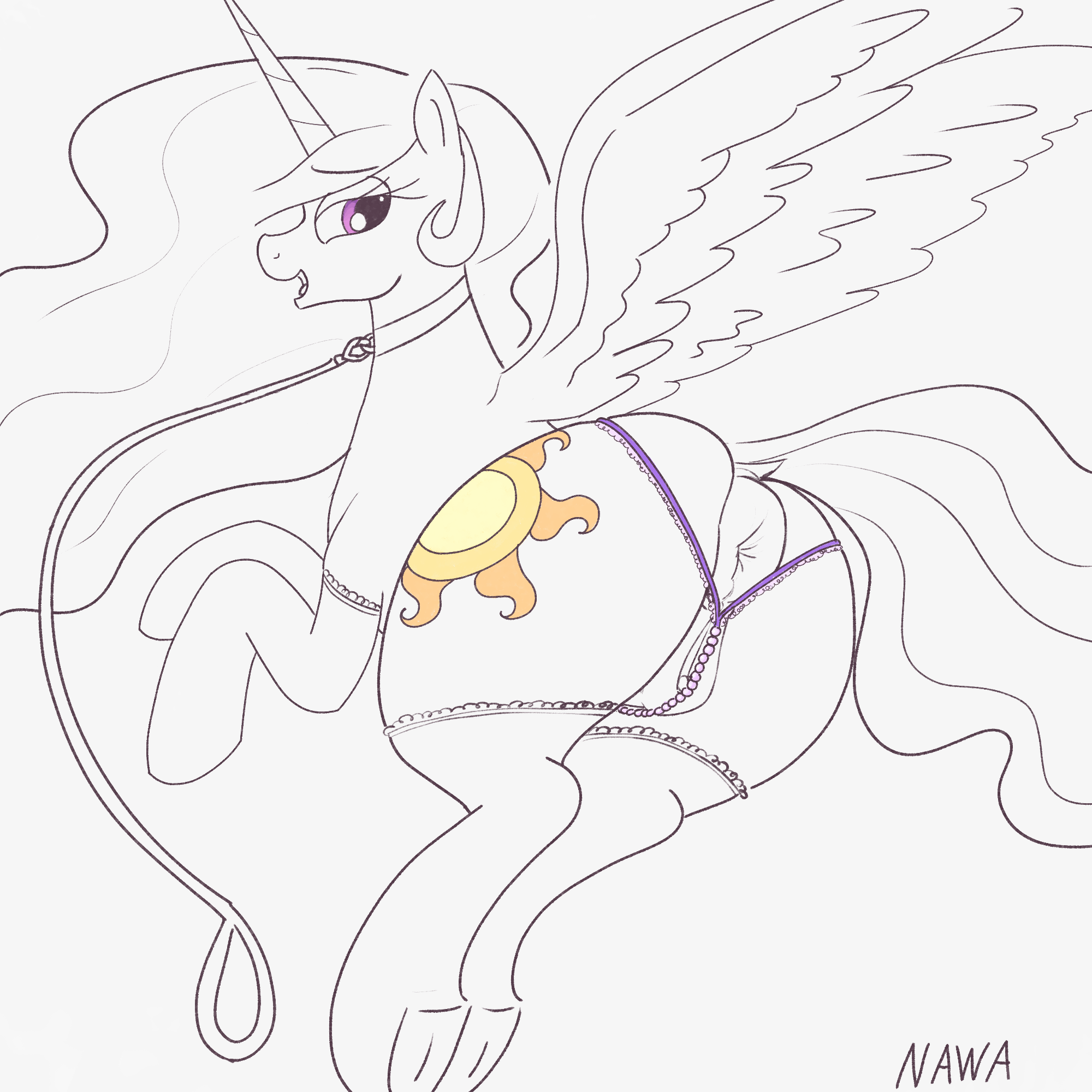 >"Truly, Mister Anonymous, I had no idea you had such specific... interests... when it came to equine fashion. However, I can only surmise from the very nature of the rabbit why you have such an intense desire to bear witness to me in such attire... You are quite the incorrigible individual, are you not? Whatsoever can a princess such as myself do with an ape such as you?"
