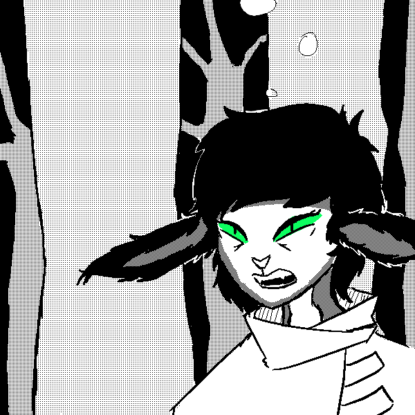 >Our Hero looks back and gets another look at the assailant before she clumsily slinks behind a tree. Our Hero gathers two pieces of crucial information, it's a woman and shes clearly inebriated. To what extent and why she's following Our Hero remains unknown but she is starting to get closer