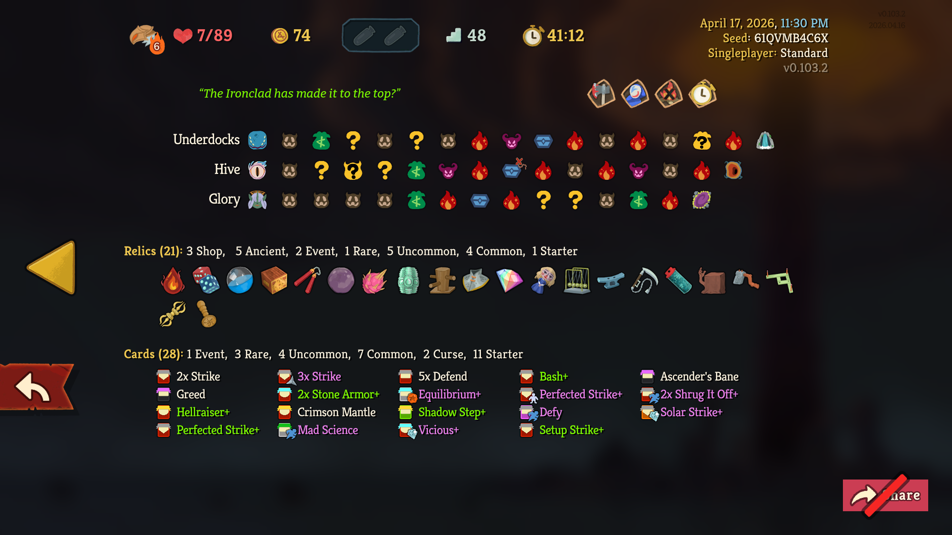 I give up. This is with like 10 save scums. On ascension 0 lmao.