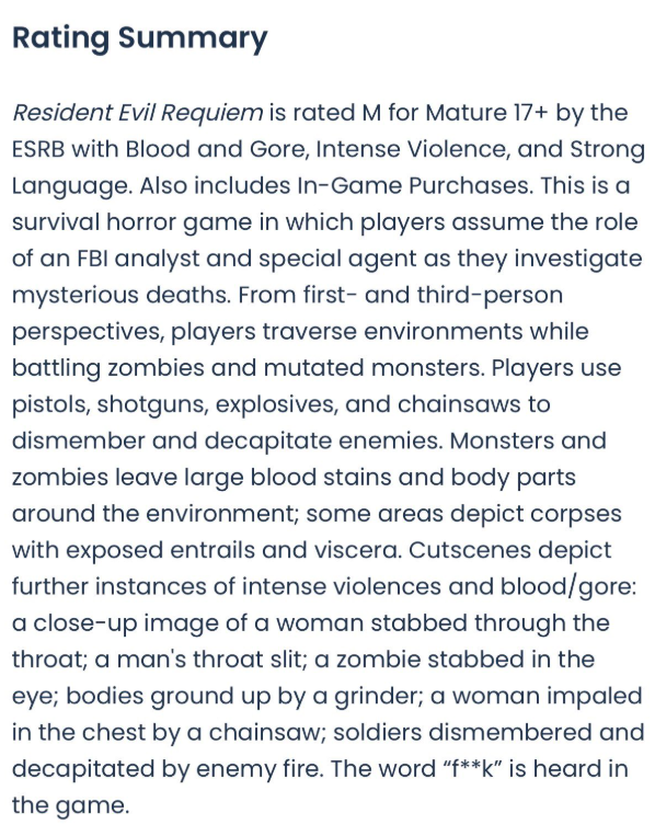 RE9 ESRB rating