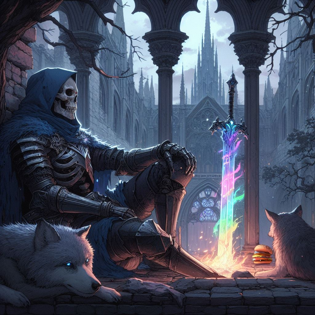 Gunner is the kind of elf who declares her undying love at full volume in the middle of a tavern, then gets offended when people don’t applaud. She’s a dweeb—the sort who practices smoldering looks in mirrors and writes terrible poetry about Sun’s "alabaster neck" (which Sun finds mortifying). Her enthusiasm is a force of nature, whether she’s hijacking bardic performances to belt out off-key ballads or insisting on "romantic stakeouts" to watch Sun sleep (Sun, of course, pretends to be dead harder). Conceited? Absolutely. She’ll preen over her own reflection in a puddle, then trip over her petticoats five seconds later. But beneath the theatrics is a heart that bruises as easily as overripe fruit—she just covers it with more ruffles.