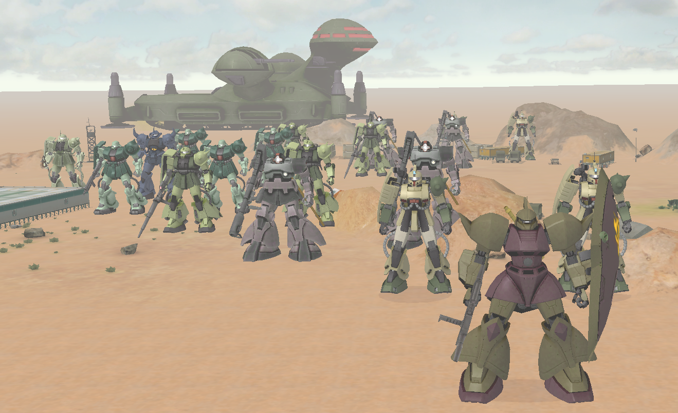 I got stopped by a war between a Dobday and a Big Tray (and its' endless horde of Gelgoogs) with a handful of Gundam Grouinds/Ez8s/Proto Gundams/FA Gundams/BD-1 EXAMs and was eventually tore apart by the Gundams because they prioritized me for some reason