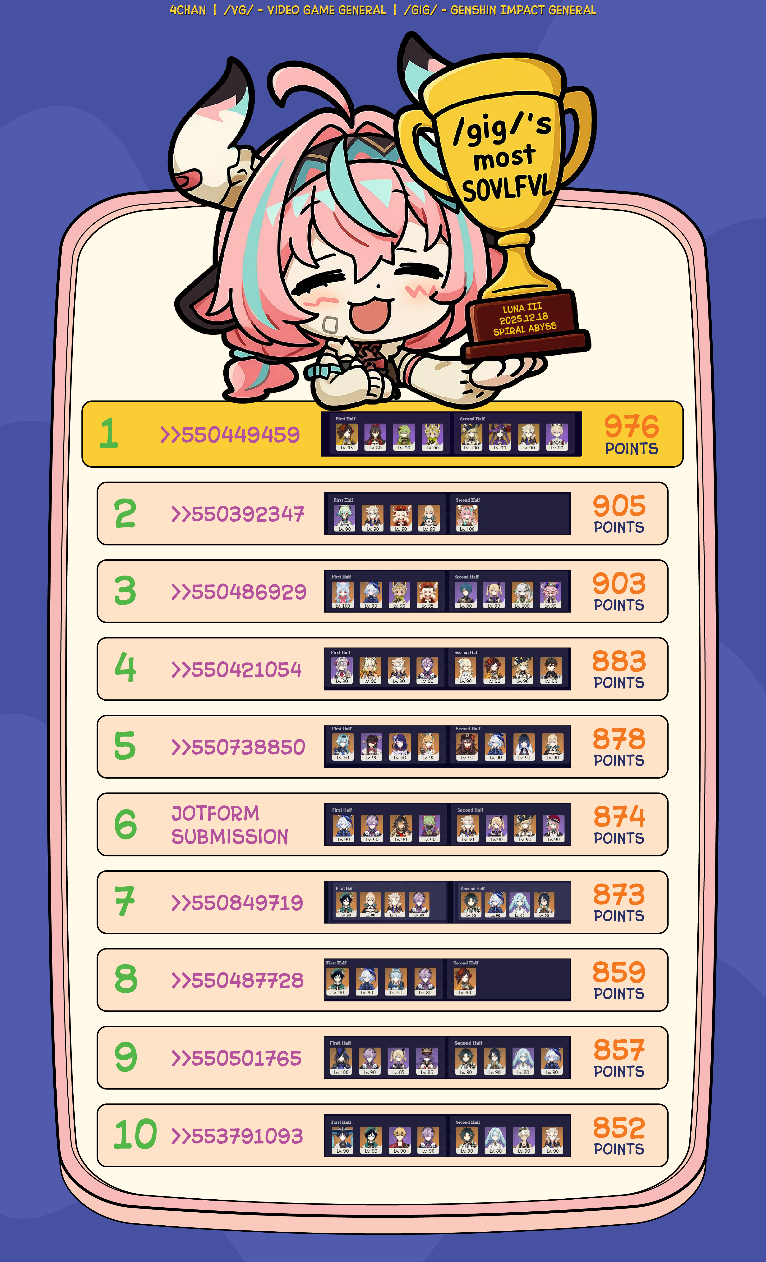 12/21/25(Sun)14:15:51 No.1910211 reminder to pull for who you like and ignore metafags and Excel-only players.