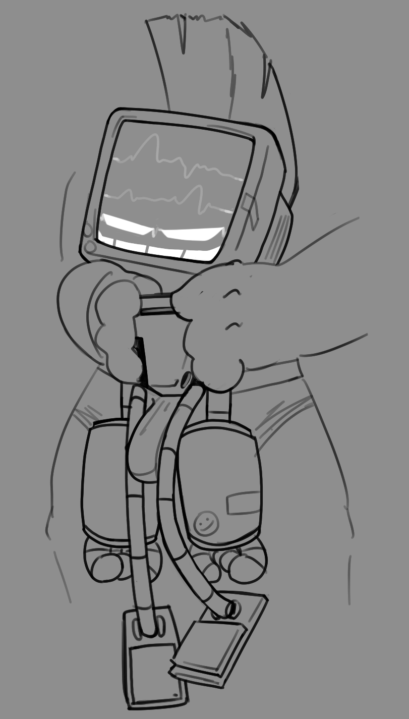 Anyone have that one picture of a robot fucking a human and saying something like, 'your vital signs are decreasing, do you want me to stop?' I sadly forgot the artist name, all I remember is that bot had a red 'tongue' in all of the artists drawings, and was white-silver-ish?
